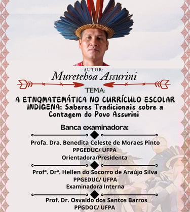 Já o professor Muretehoa Assurini defenderá a dissertação "A ETNOMATEMÁTICA NO CURRÍCULO ESCOLAR INDÍGENA: Saberes Tradicionais sobre a Contagem do Povo Assurini", que tem como objetivo compreender os conceitos matemáticos dentro da cultura Assurini, promovendo a integração entre os saberes tradicionais e a prática pedagógica na Escola Warara’awa Assurini. A banca de defesa será às 15h.